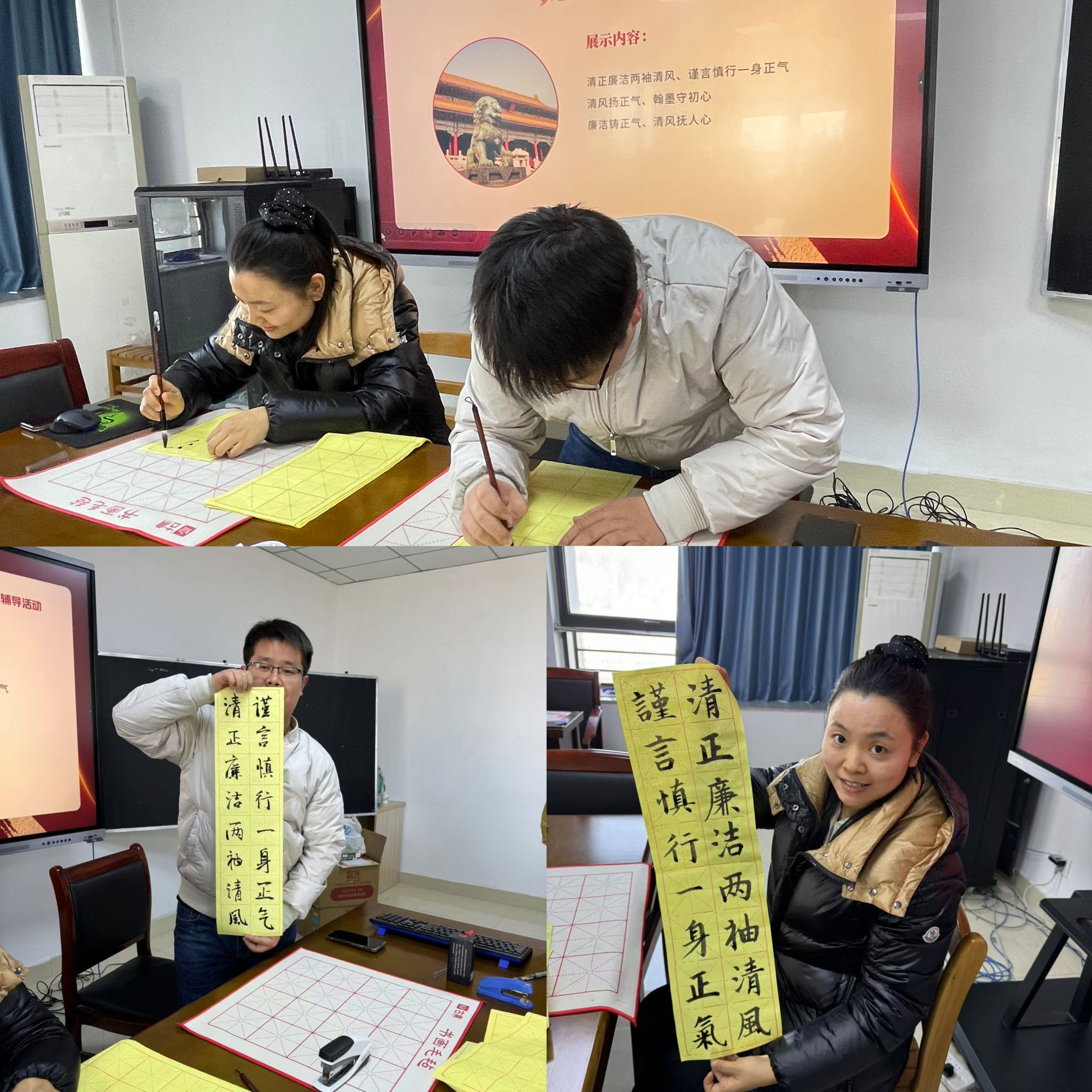 为提升教职工职业幸福感,有效缓解工作压力,进一步增强廉洁意识,12月18日,教育与心理科学学院纪委联合分工会在锦绣校区行知楼710会议室开展“书心暖意、平心静气”暨“翰墨书廉”书法解压团体辅导活动。