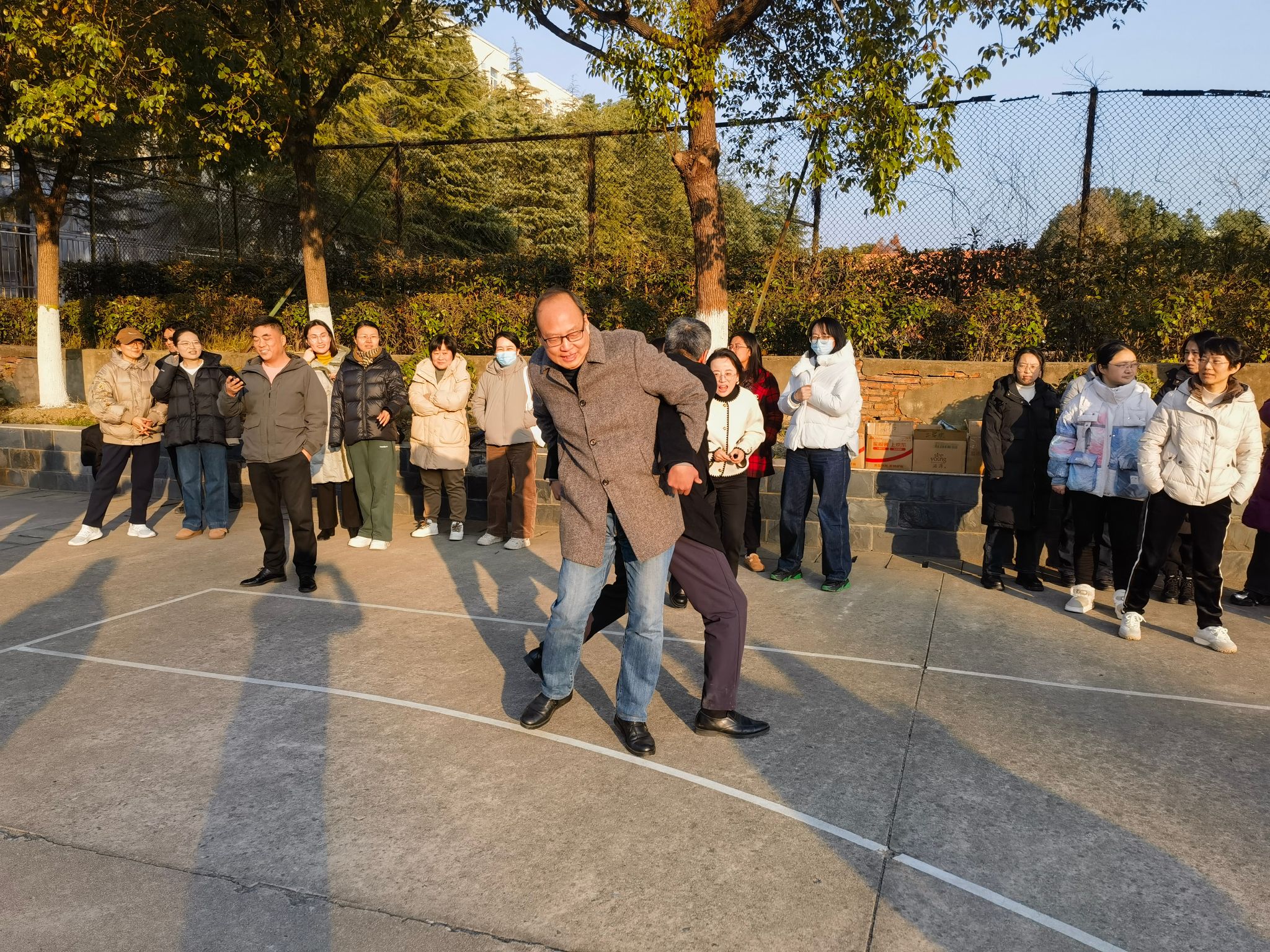 为增进教职工之间的沟通交流,丰富学院教职工文化活动,增强团队凝聚力,引导教职工积极参与体育运动,享受快乐生活,12月18日下午在锦绣校区篮球场,学院分工会举办了第二届“健康运动,快乐生活”螃蟹背西瓜趣味活动,学院党政班子和全体教职工积极参与,热闹非凡。