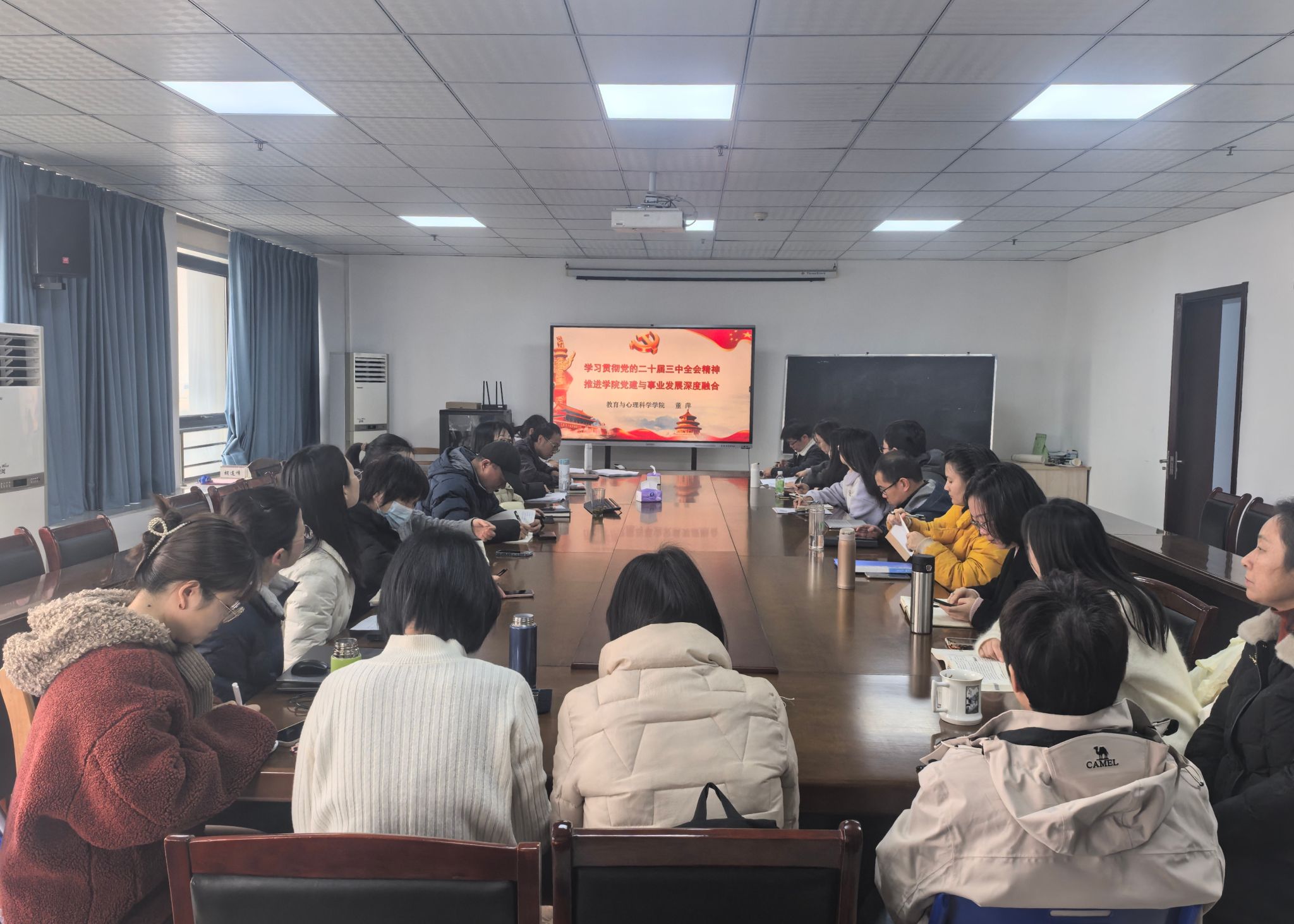 与会人员就学习贯彻党的二十届三中全会精神进行深入研讨交流。大家纷纷表示,要将党的二十届三中全会精神融入到日常教育教学工作中,坚持学用结合、以学促干,切实把学习成果转化为推动发展的新思路、新举措,立足岗位、积极作为,为学院高质量发展贡献自己的力量。(教育与心理科学学院:张傲娜)