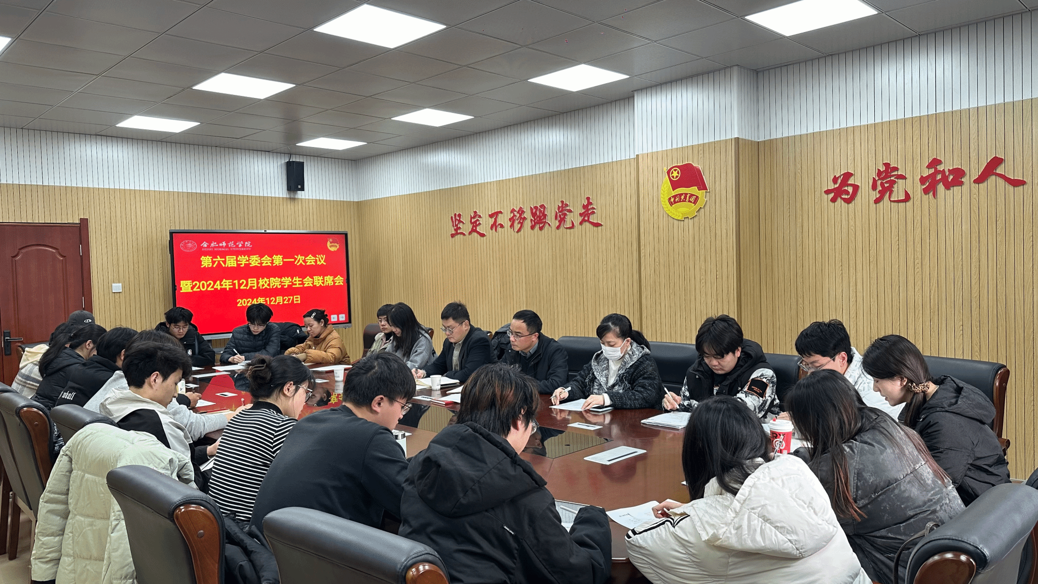 12月27日中午,第六届学生委员会第一次会议暨12月校院学生会联席会在锦绣校区共青之家召开,院团委书记刁文彬、院团委副书记何磊、院团委姚瑶、魏晓倩、钟树旺、第六届学生委员会全体委员、院学生会主席团成员及各二级学院学生会秋季执行主席参加会议。