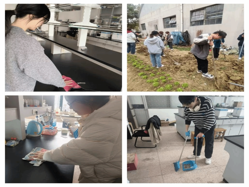 为大力弘扬新时代劳动精神,教育引导学生崇尚劳动、尊重劳动、热爱劳动,不断提高学生的劳动意识和实践能力。2024年11月以来,生物与食品工程学院学生党支部组织2022、2023级和2024级全体学生党员和入党积极分子开展“激发奋斗意志、弘扬劳动精神”劳动教育系列实践活动。