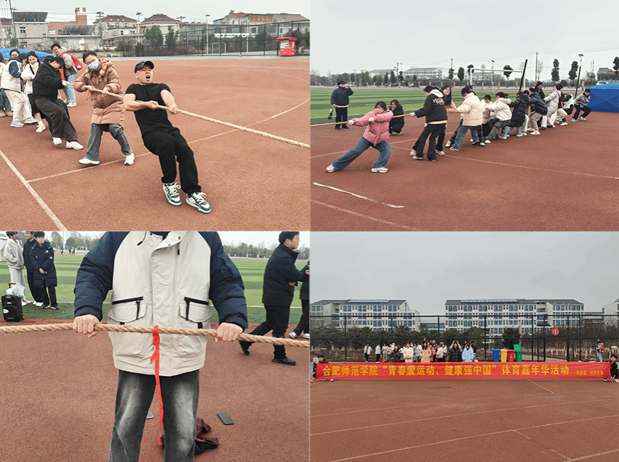 为积极响应学校“五育并举”教育理念,营造浓厚的校园体育文化氛围,倡导健康生活理念,进一步增强班级凝聚力,3月5日,文学院在滨湖校区风雨操场举办了“齐心协力 开怀一笑”趣味拔河班班赛和“跃动青春”一分钟跳绳打榜赛。此次活动以“运动燃激情 青春正飞扬”为主题,紧密结合学校“青春爱运动,健康强中国”体育嘉年华活动安排以及第二课堂实践需求,促进同学们“走下网络、走出宿舍、走向操场”,吸引了众多学生积极参与,现场气氛热烈。