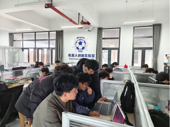 为助力新手突破技术盲区,3月15日,计算机与人工智能学院机器人创新实验室Miracle团队主动为新手参赛者开展了"全维度赛前赋能培训"。此次培训深度解析RoboCup仿真2D与仿真3D项目的技术规则、强化编程与算法优化实战、演示仿真系统操作与调试技巧,通过"理论讲解+案例实操+互动答疑"的立体化模式,Miracle团队队员用专业知识为新手同学扫清技术盲区,帮助选手构建竞技信心。