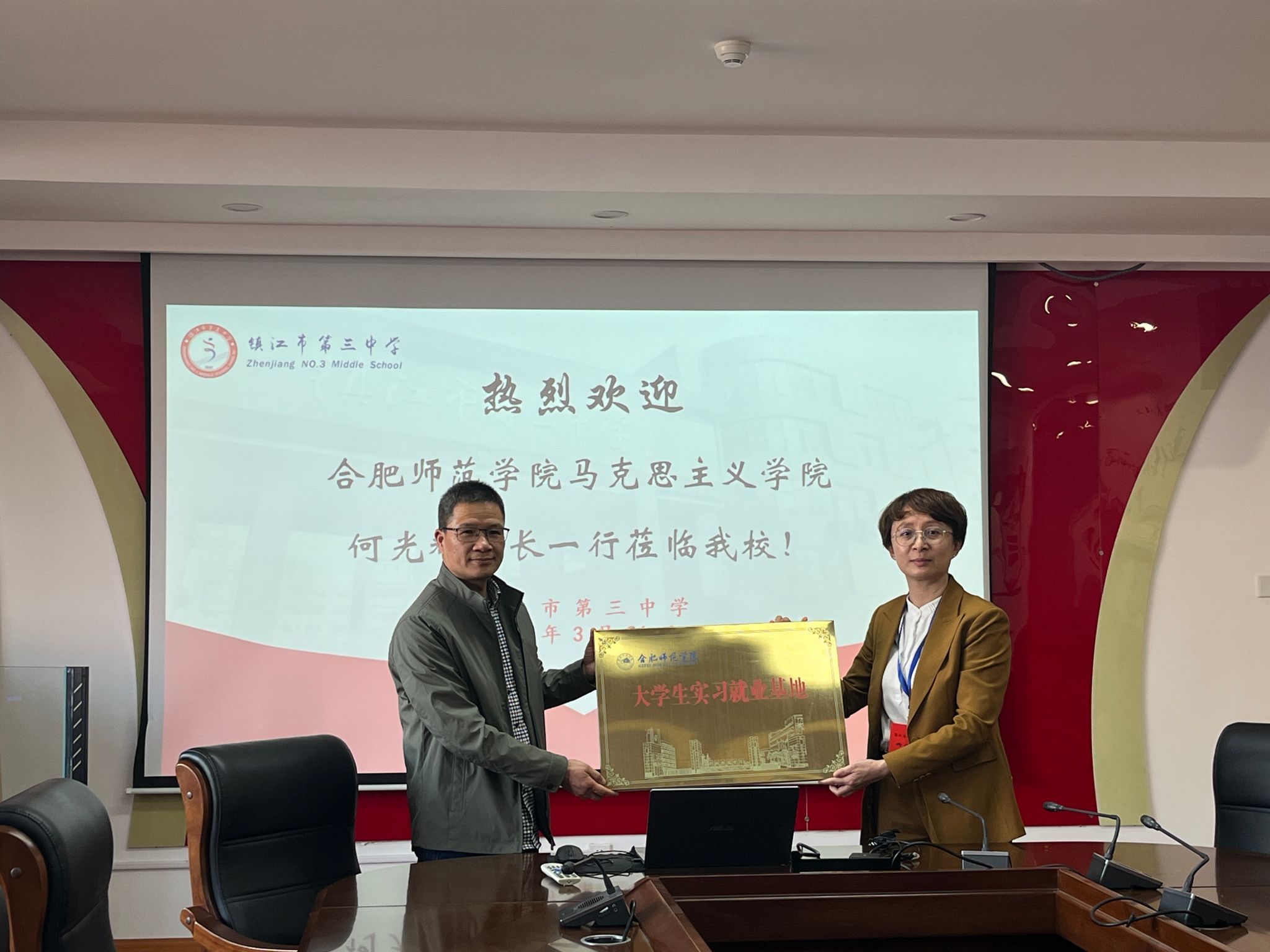 为贯彻落实学校“春季促就业攻坚行动”的要求,拓展学院毕业生省外就业渠道,3月26日,马克思主义学院院长何光辉、校人事处副处长胡婷婷、院党总支副书记吴世红等一行6人前往江苏省镇江市第三中学、宜兴市和桥高级中学开展访企拓岗促就业活动,看望慰问2024届学院优秀毕业生,签订大学生实习就业基地协议并进行揭牌。