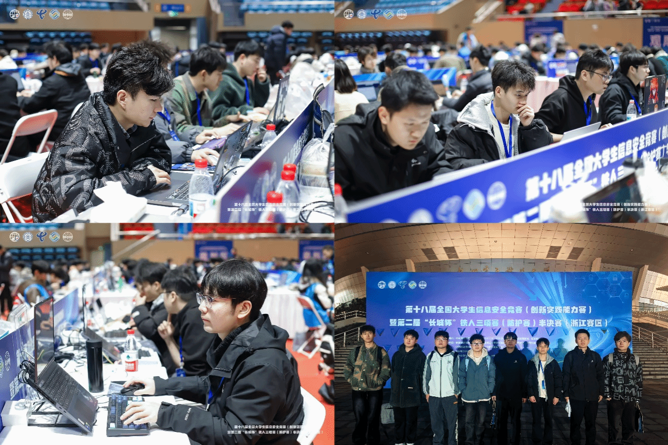 2025年3月,计算机与人工智能学院网络安全创新实验室NU1315战队在两项国家级赛事中捷报频传:在第十八届全国大学生信息安全竞赛(创新实践能力赛)暨第二届“长城杯”铁人三项赛(防护赛)浙江赛区半决赛中,我院以总分第二的优异成绩荣获一等奖;在第十八届全国软件创新大赛-软件系统安全赛华东区域赛(攻防赛)中,团队凭借出色表现位列一等奖第九名,展现了扎实的技术功底与卓越的创新能力。
