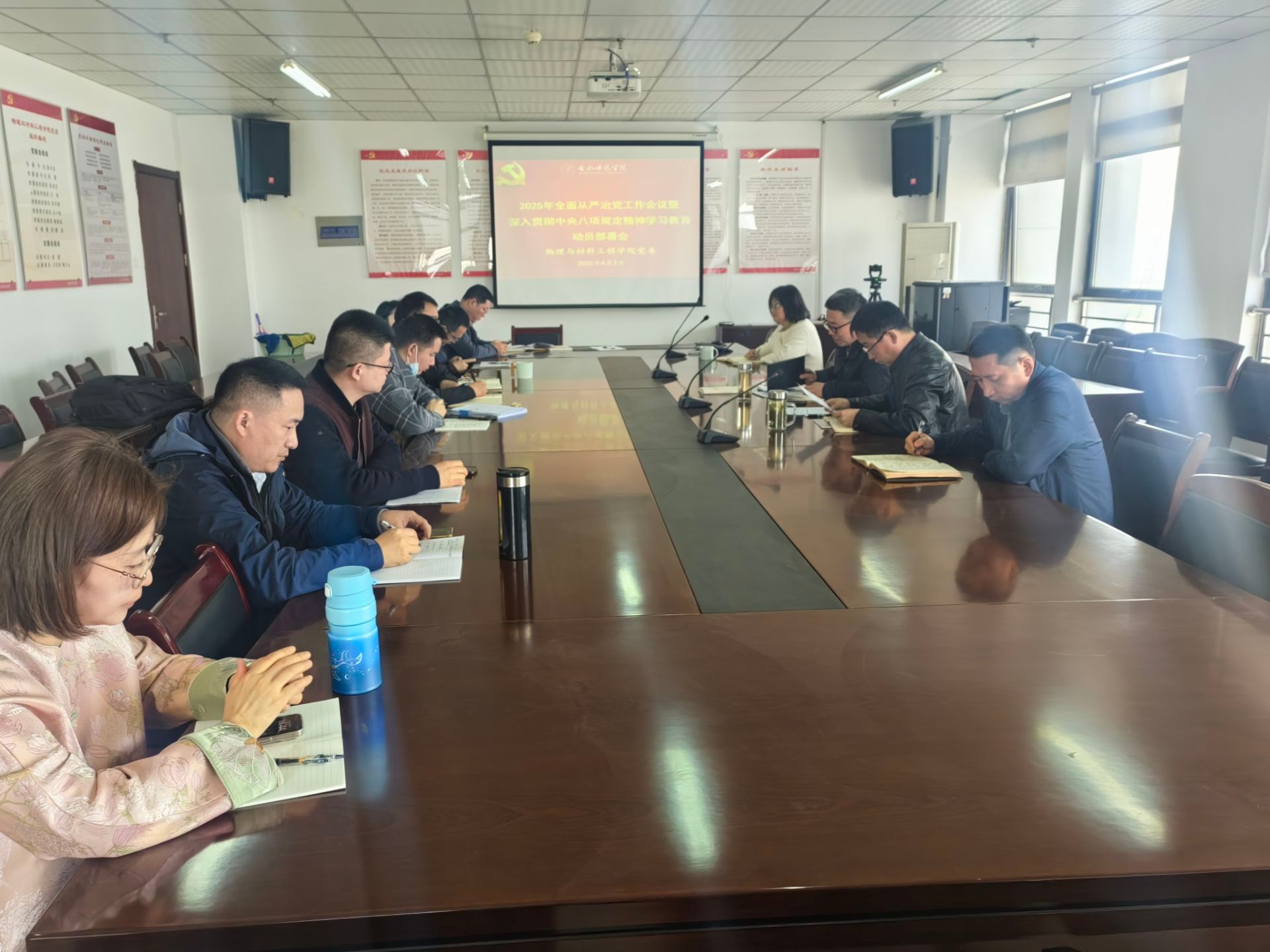 为压实全面从严治党主体责任,营造风清气正的政治生态和育人环境,4月2日,物理与材料工程学院在锦绣校区1202会议室召开2025年全面从严治党工作会议暨深入贯彻中央八项规定精神学习教育动员部署会。学院党政领导班子成员、党委委员、纪委委员、分工会主席、分团委书记、各支部书记参加会议。会议由学院党委书记吴震主持。