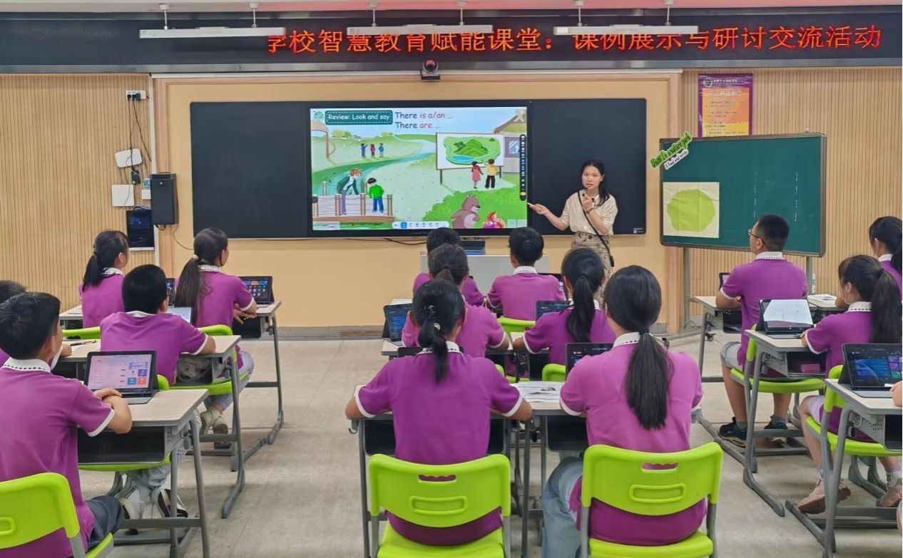 为深入贯彻智慧教育发展理念,探索人工智能技术与教学的深度融合,5月21日下午,外国语学院钱莉娜副教授在附属西安路学校开展智慧课堂听评课以及AI应用课培训。附属西安路学校党支部书记、校长徐年乐,党支部副书记徐瑞,副校长沈章军,教师学术交流部主任聂和彬,以及全校教师参加了培训课。