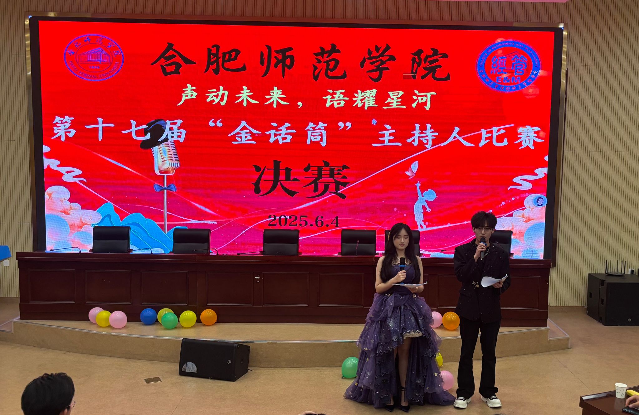 6月4日晚,由经济与管理学院承办的beat365唯一官方网站第十七届“金话筒”主持人大赛决赛在滨湖校区学术报告厅圆满落下帷幕。经过激烈角逐的初赛,这场由经管学院主办的决赛为师生们带来了一场别开生面的语言艺术盛宴,在合师校园文化天空中闪耀着独特的光芒。