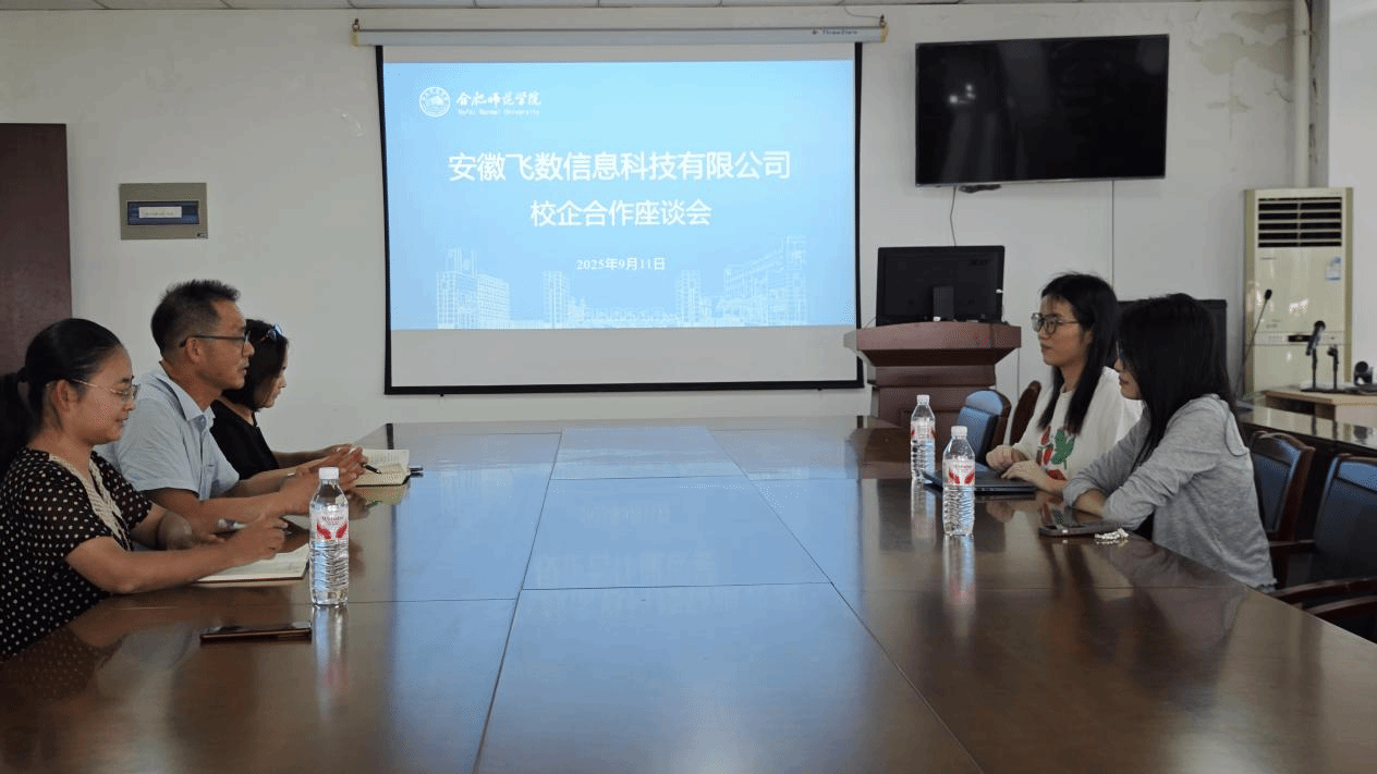 为全力帮助毕业生更高质量就业。9月11日下午,计算机与人工智能学院在行知楼1302会议室成功举办安徽飞数信息科技有限公司校企合作座谈会。学院书记王祥、副书记杨萍、副院长刘路路,数据科学与大数据专业负责人汪中,毕业班辅导员以及安徽飞数信息科技有限公司人力资源总监梁瑞等一行2人出席座谈会。