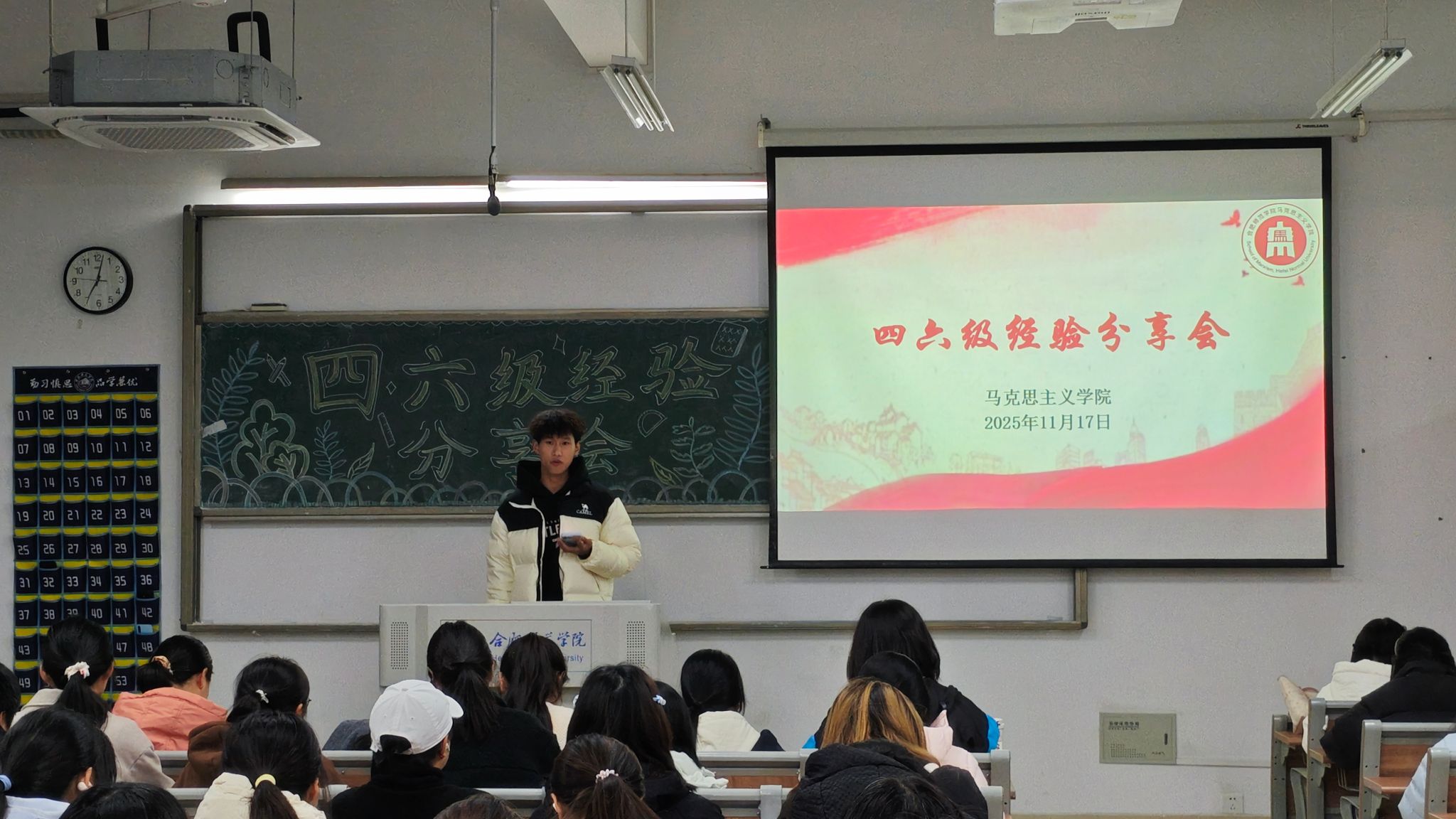 为助力马院学子高效备考四六级考试,厘清备考思路、掌握答题技巧,11月17日,马克思主义学院于博学楼B309举办“朋辈共奋进 冲刺四六级”英语四六级经验分享会。活动邀请2024级四级高分学子方嘉媛、丁彤、龚雯雯作为分享人,2025级全体学生参加。