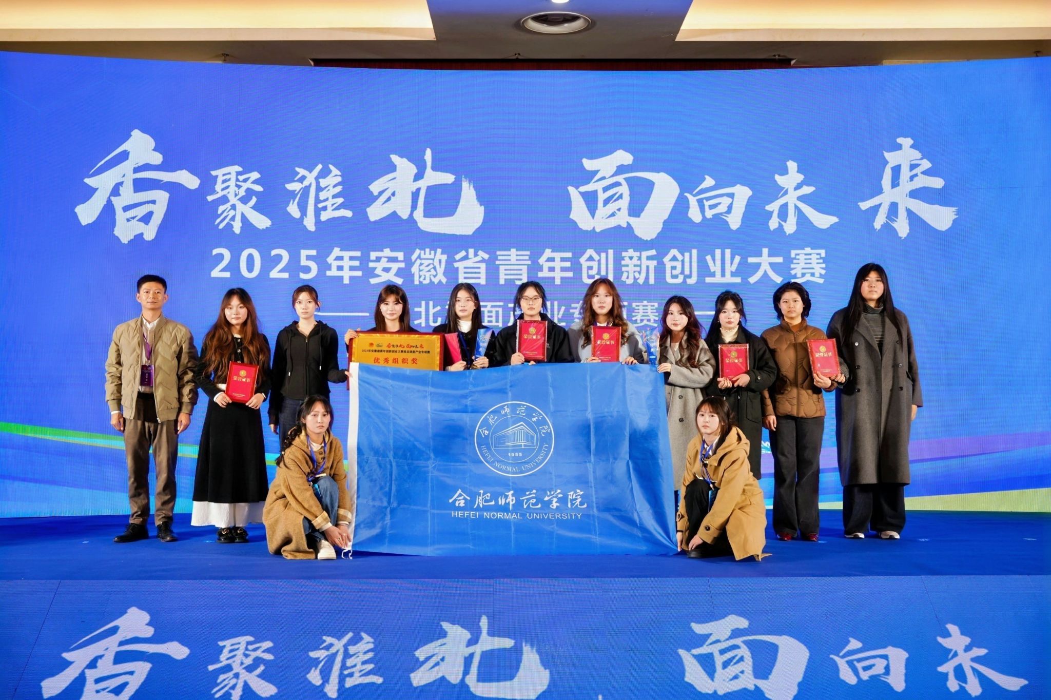 11月18日至19日,2025年安徽省青年创新创业大赛(淮北烫面产业专项赛)决赛暨颁奖仪式在淮北市圆满落幕。我院12名学子凭借扎实的专业素养、新颖的创意构思与出色的现场表现,在近300个参赛项目中脱颖而出,美术与设计学院教师朱宇迪担任专业指导老师,院团委兼职副书记吴杰老师率团队参赛。斩获银奖1项、铜奖1项、优秀奖4项,我院荣获“优秀组织奖”。