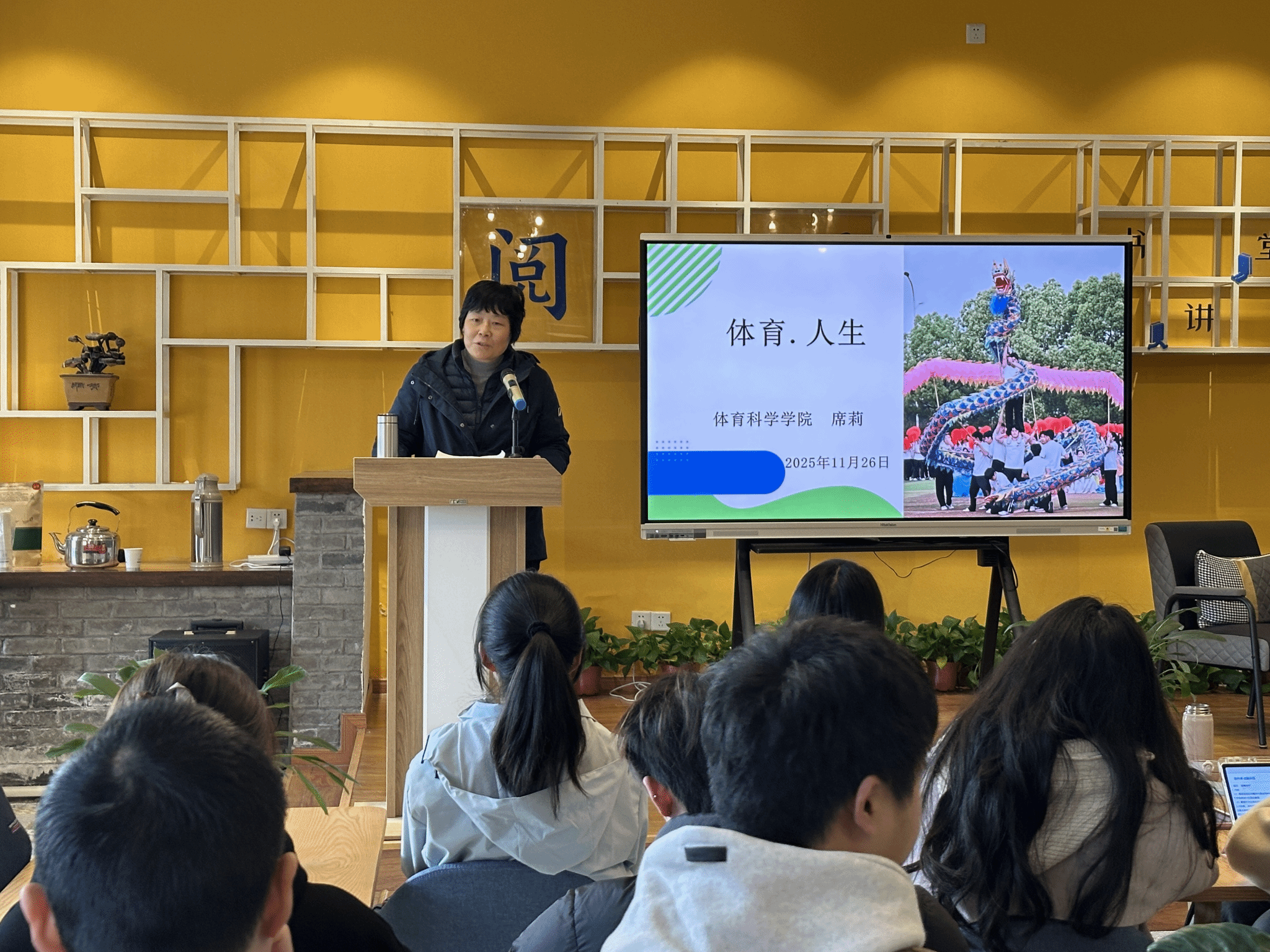 讲座中引导同学们思考。席莉教授建议同学们先找到自己专属的“运动人设”,如社交型可选择篮球等团体运动,独处型适合跑步、瑜伽等运动,并鼓励大家主动跳出运动焦虑,从微小行动出发,让运动成为生活常态,以强健体魄与坚韧意志应对人生挑战。整场讲座案例鲜活、干货满满,既有历史厚度与哲学思考,又有贴近校园生活的实践方案,改变了同学们以往对体育的传统认知。(教务处 张莉)