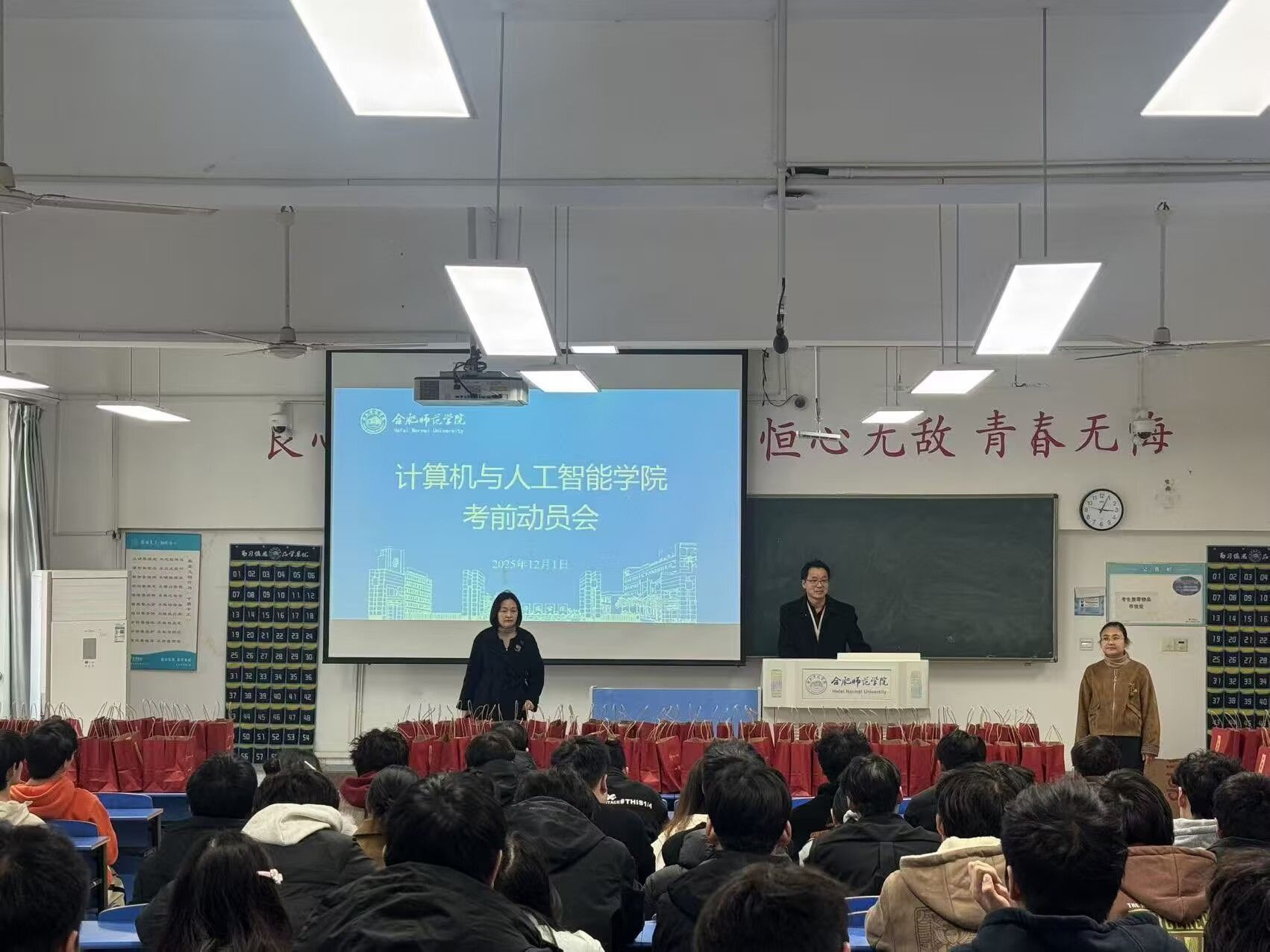12月1日下午,计算机与人工智能学院在逸夫楼A206举办了2026年全国硕士研究生招生考试考前动员会。学院党委书记王祥、副书记杨萍、副院长刘路路、毕业班辅导员及考研学子参加了此次动员会。