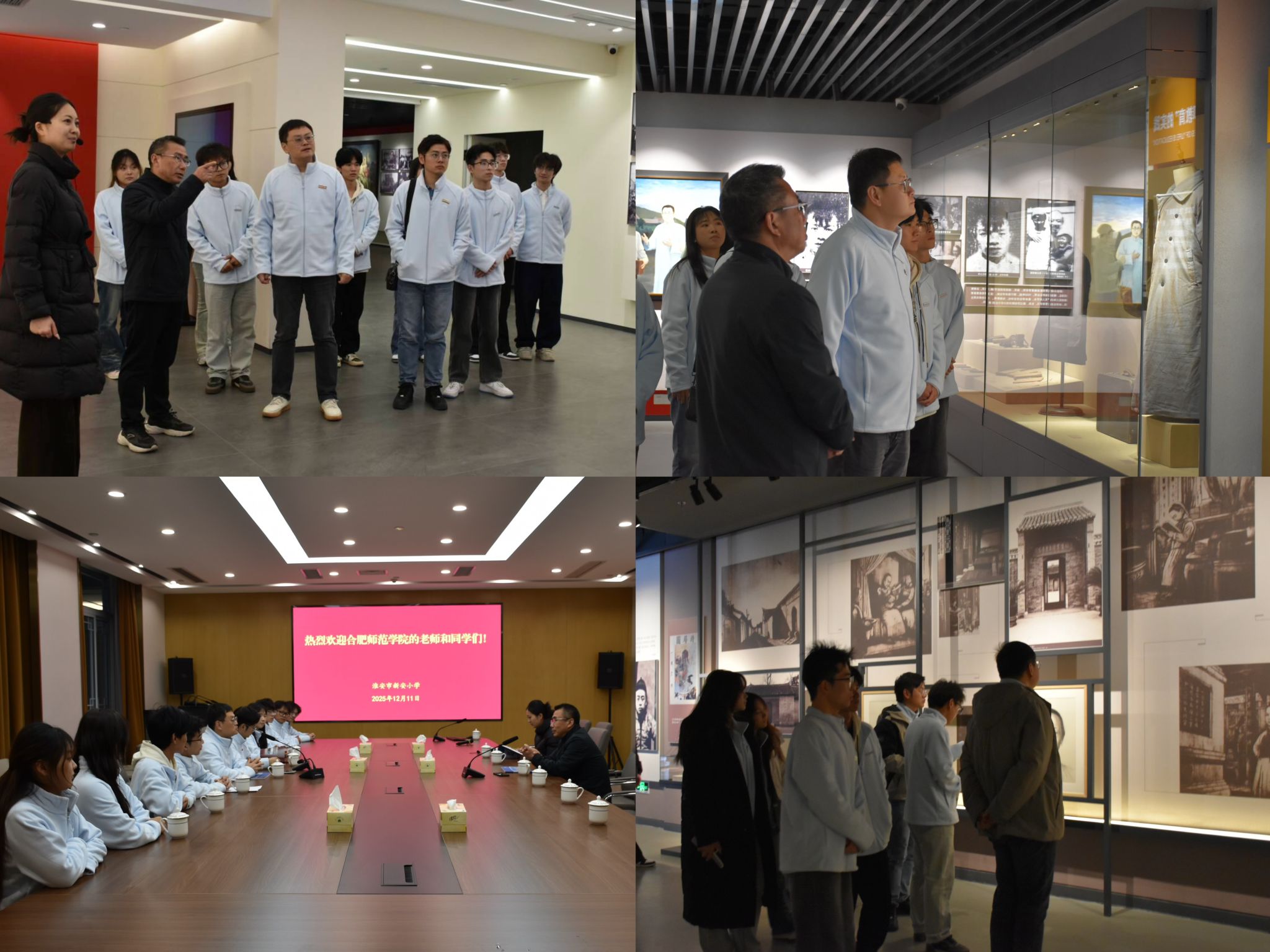 12月11日下午,研学团队抵达淮安后,首站来到具有光荣革命传统的新安小学。2021年5月30日,习近平总书记给新安小学少先队员的回信中指出,当年,在党的关怀和领导下,“新安旅行团”不怕艰苦,足迹遍及大半个中国,以文艺为武器,唤起民众抗日救亡,宣传党的主张,展现了爱国奋进的精神风貌。该校由伟大的人民教育家陶行知先生创办,与“新安旅行团”有着深厚的血脉渊源。师生们通过实地走访,切身感受这所学校的行知文化内涵和革命历史底蕴。团队参观了新安旅行团历史纪念馆,馆内丰富的文物史料与生动的场景复原,全面展现了“新安旅行团”这一少年儿童革命团体在党的领导下,践行“生活即教育,社会即学校”的行知理念,足迹遍及全国、宣传抗日救国的波澜壮阔的历程。师生们在展品前驻足凝视、沉思良久,深刻感悟到革命先辈爱国奋进、不畏艰险、勇于实践的崇高精神,对“人小志气大,爱国走天下”的精神有了更为直观和深入的理解。