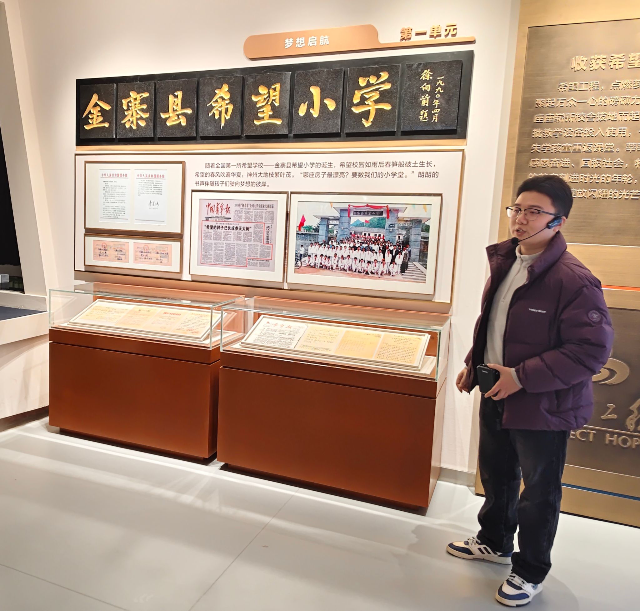 走访期间,王雨杨带领师生先后参观了他工作的希望工程纪念馆和曾任职的全军乡,让大家直观感受基层文化建设与他扎根乡村的日常。交流中,他分享了去年为熊家河村作词谱曲、创作村歌的经历,用音乐记录乡村发展,践行“以美育人、以文化人”的使命。