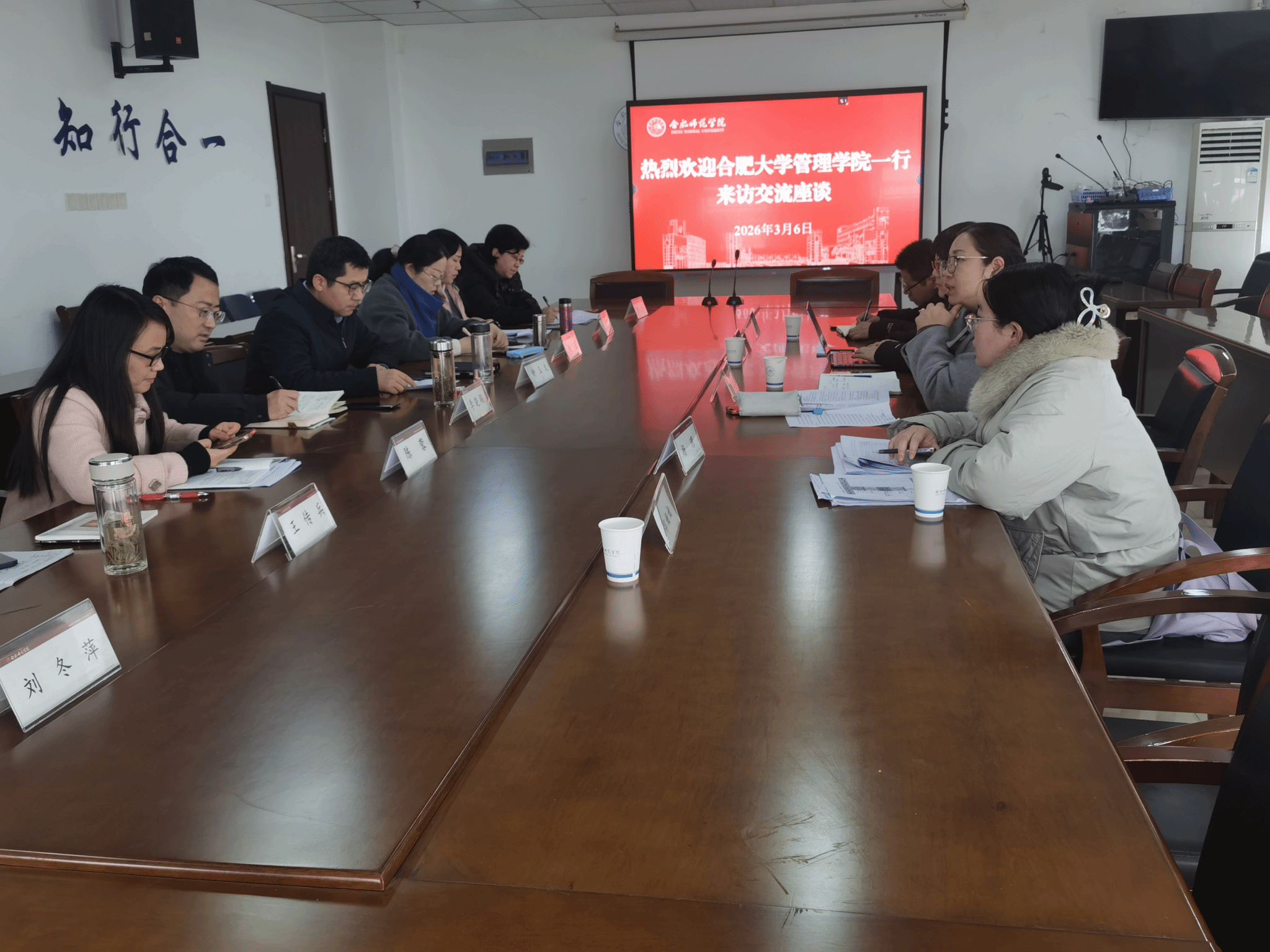 会上,李晓翔院长对吴悦一行的到来表示热烈欢迎,并简要介绍了学院发展历程、学科布局及近年来在“师范性、应用型”办学定位下取得的育人成效。吴悦副院长详细介绍了合肥大学管理学院的发展概况,重点分享了该院在会计学专业建设、研究生培养及产教融合方面的特色做法与成功经验。她表示,合肥大学管理学院始终紧扣区域经济社会发展需求,致力于培养高素质应用型人才。