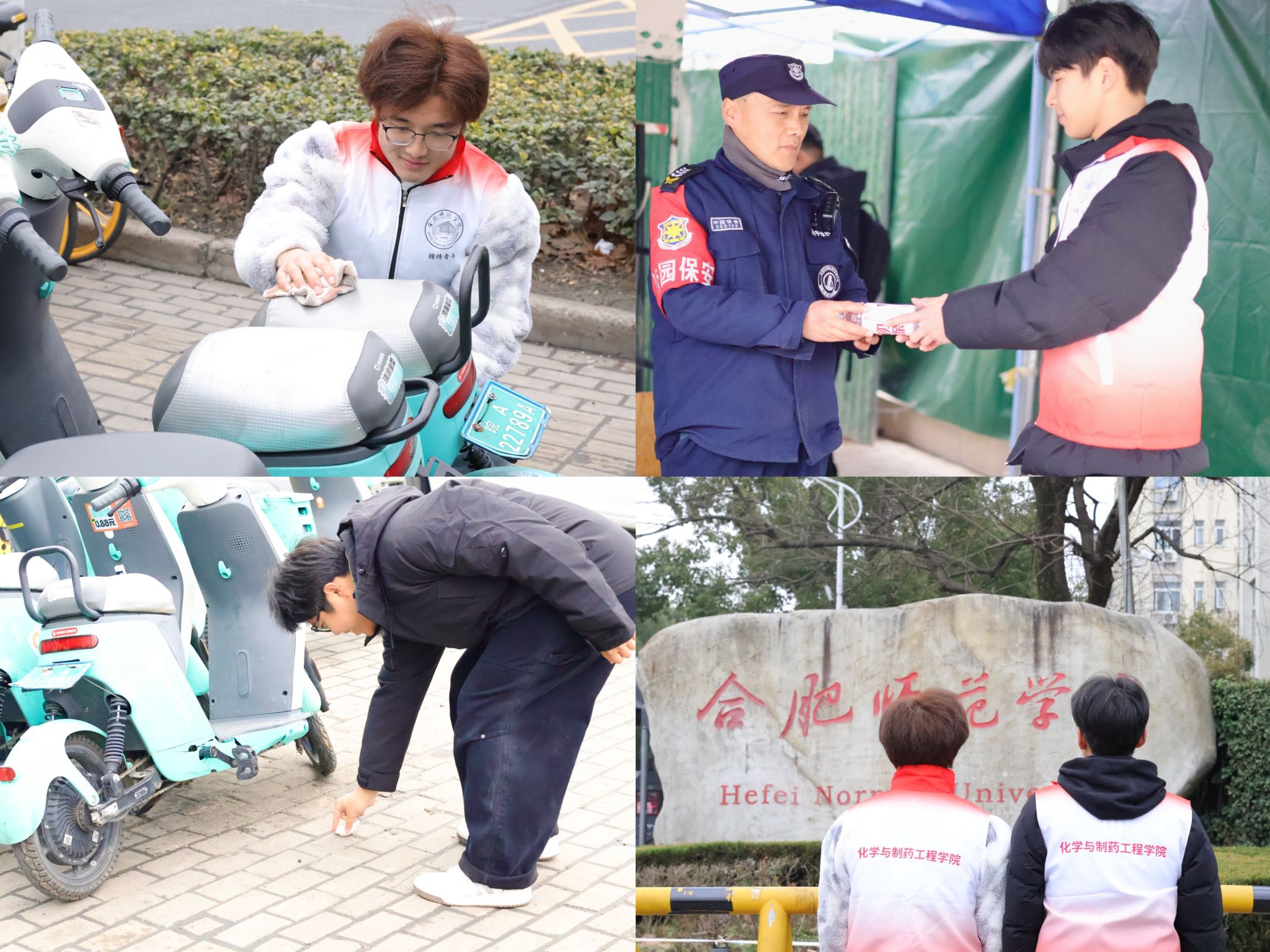 2025级化学(师范)、2025级化学工程与工艺专业联动开展系列校园公益实践,以微小行动传递温暖。“单车焕新”大作战中,同学们化身“单车美容师”,为校园里蒙尘、歪斜的共享单车擦拭车身、整理车座、扶正摆放,让原本灰头土脸的车辆重焕“颜值”,方便师生日常出行。“爱心水站”快闪活动中,志愿者在校园设立临时爱心水站,为忙碌的食堂阿姨、保安大叔等后勤工作人员递上一瓶水,道一声“辛苦啦”,用真诚问候换来温暖笑容,致敬默默奉献的校园守护者。“绿野仙踪”改造计划中,志愿者们深入校园绿化带,弯腰捡拾隐藏在草坪、花坛中的纸屑、塑料袋等垃圾,不放过任何一个卫生死角,让原本杂乱的绿化区域重焕生机,进一步美化了校园环境。
