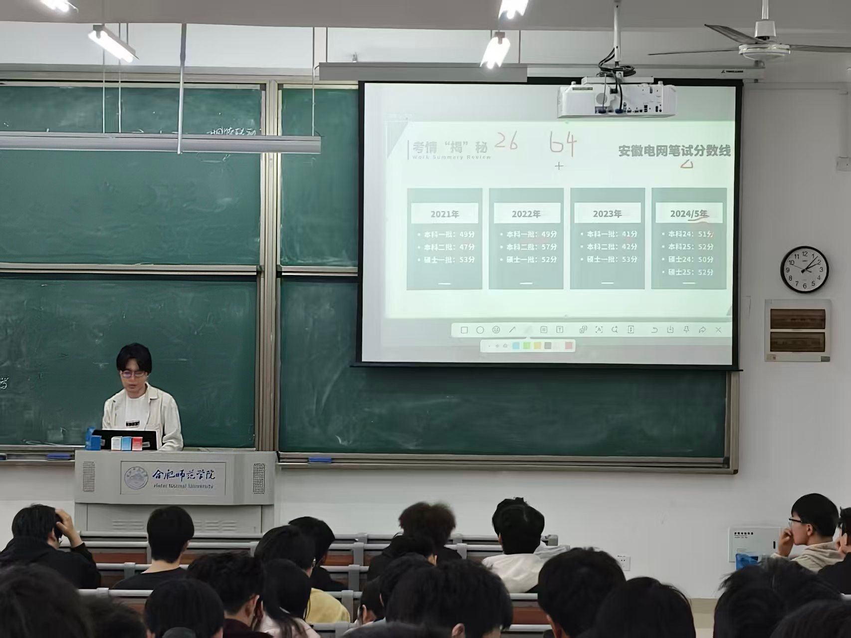 结合专业就业导向,分享会重点解读了2024-2025年安徽各地电网招录政策,详细梳理了各地招录人数、学历门槛、竞争程度等关键信息,为有意向进入电网系统的学子明确了报考地域选择方向、招录流程要点及考察重点,贴合电子信息类专业学生就业核心需求。同时,针对学子普遍关注的考研备考问题,结合最新考研考纲趋势及电子信息与集成电路相关专业备考特点,深入分析备考重点、难点,提供科学系统的备考规划、复习方法指导,助力学子高效备考。