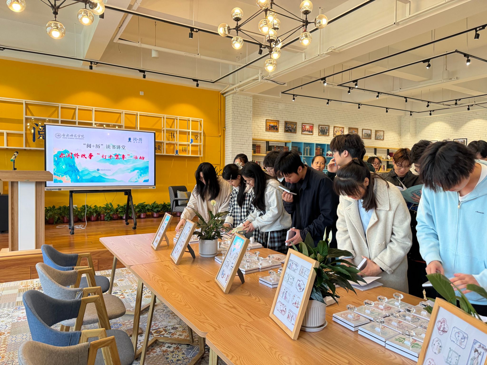 “我家曾住赤阑桥,邻里相过不寂寥。”南宋词人姜夔的一句浅吟,让合肥城南的一座小桥,成为刻在宋词里的城市印记。教务处处长钱立青教授师生团队从阅读中汲取灵感,用专业所学为合肥本土故事创作了一份关于阅读的特别礼物,4月23日,世界读书日当天,“阅+历”读书讲堂举办赤阑桥故事“打卡集章”活动,以42枚印章将“赤阑桥”城市印记变成了可触摸、可带走的小美好奉献给师生。