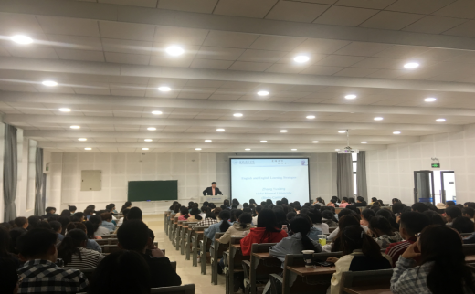 接着,张宇翔教授亲切地向同学们问好,同学们纷纷被其流利而又标准的口语吸引,积极踊跃与张宇翔教授进行互动,气氛轻松活跃。讲座从英语语言的自身特色与英语学习建议两个方面出发,全方位向大家展示英语学习的重要性与特殊性,还分享了自己留学的部分经历,用亲身经历告诉了同学们努力、热情与坚持的力量。
