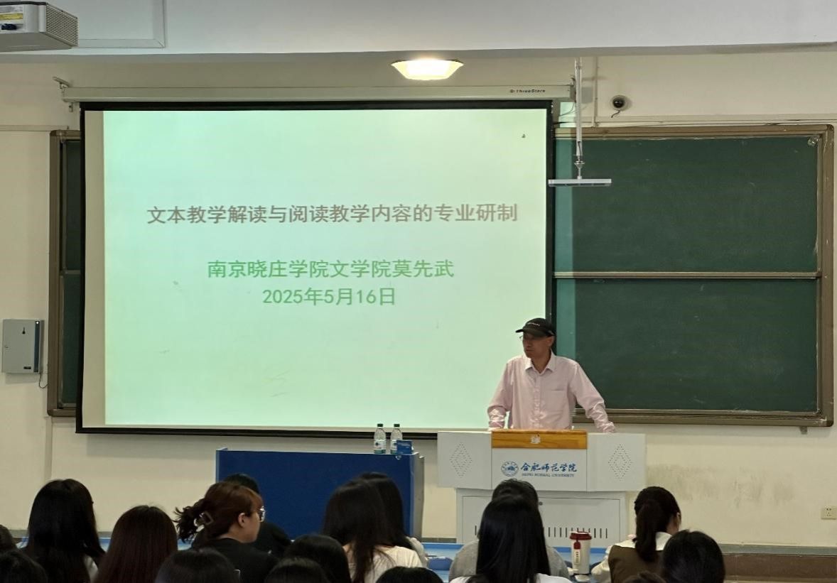 5月16日,文学院“经典悦读”讲坛在锦绣校区逸夫楼405教室举行,南京晓庄学院文学院教授、硕士生导师莫先武应邀作题为《文本教学解读与阅读教学内容的专业研制——以<背影>为例》的学术报告。报告会由文学院副院长甘松主持,语文教育硕士研究生、师范生近百人到场聆听。