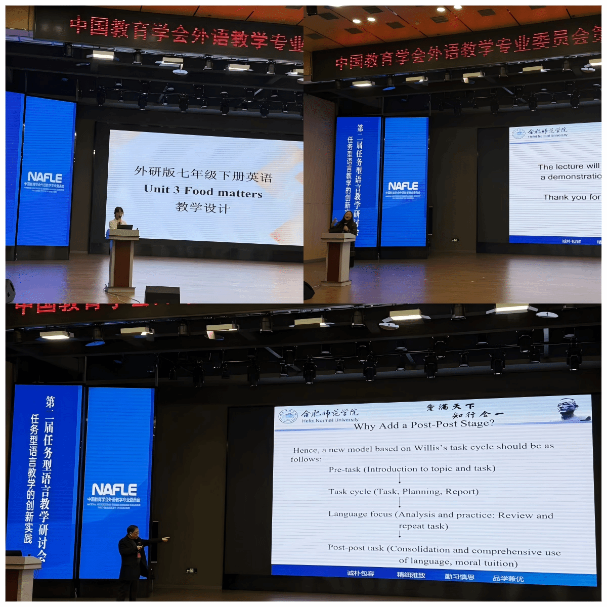 我校外国语学院张宇翔教授和王继玲副教授带领2024级、2025级学科教学(英语)研究生参会,并作工作坊发言。团队分享了三六六教育集团资助的第二语言习得理论与实践项目成果——基于Jane Willis任务型教学框架的PWPP在阅读教学中的应用,介绍了该成果在研究生教学技能训练中的应用,论证了PWPP适配国内学生英语学习的理论基础及对落实新版英语课标实践价值,还展示了相关阅读教学案例。