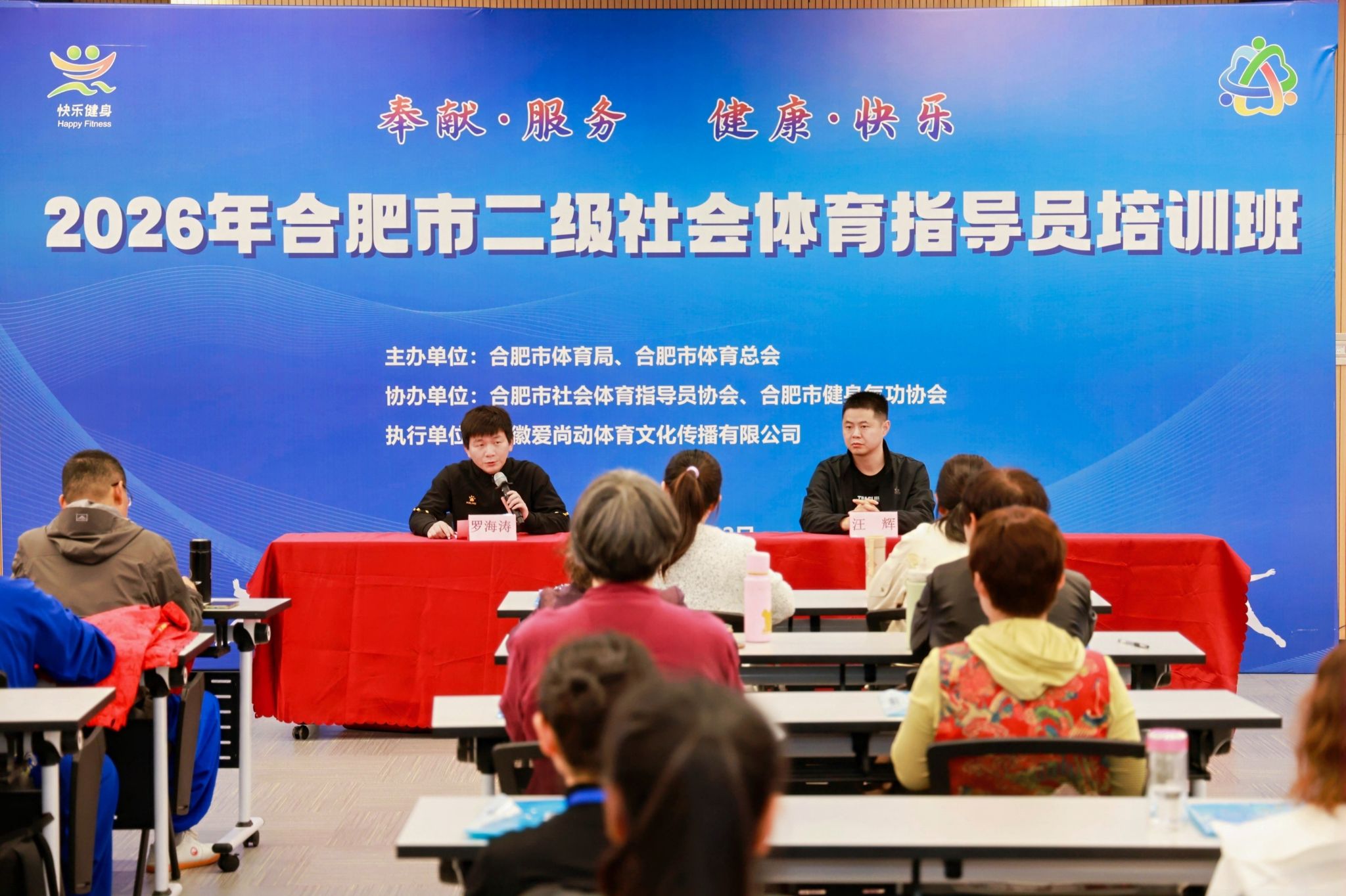 为深入贯彻全民健身国家战略,进一步完善全民健身志愿服务体系,加强合肥市社会体育指导员队伍建设,4月11日,2026年合肥市第二期二级社会体育指导员培训班在合肥市全民健身中心顺利开班。体育科学学院汪辉副教授应邀为全体参训学员作《社会体育指导员理论知识》专题授课。