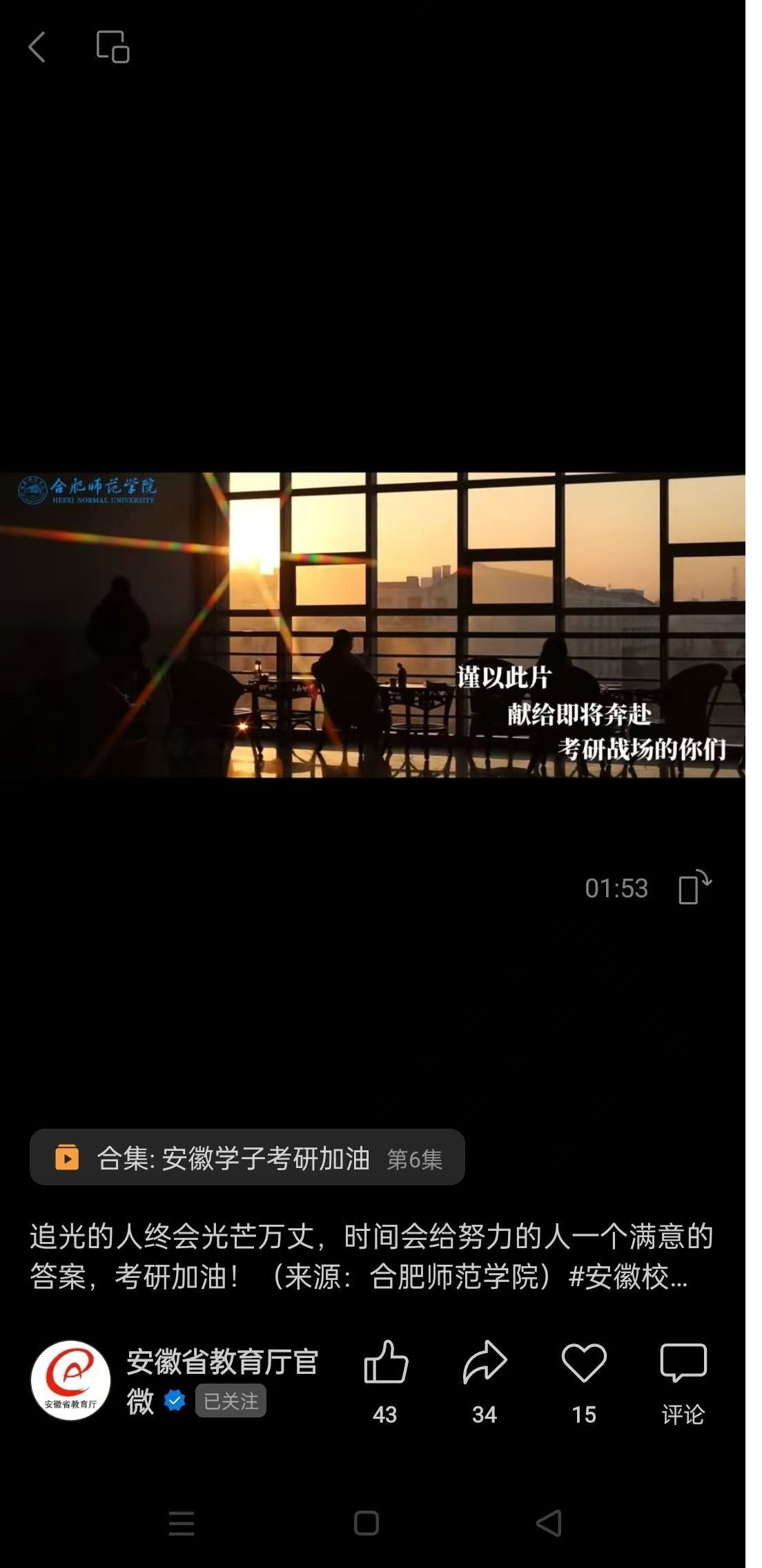 【安徽省教育厅官微】安徽省教育厅官微视频号发布我校考研主题视频