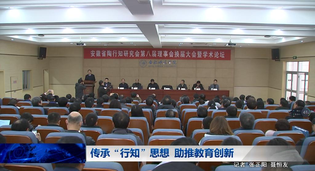 本网讯 1月20日,安徽省陶行知研究会第八届理事会换届大会在我校锦绣校区学术报告厅举行。省委教育工委副书记王佩刚,省陶研会会长、我校党委书记徐成钢,省陶研会副会长、我校副校长曹卓良,中国陶行知研究会副秘书长储朝晖,安徽省教育学会副会长查海波,省教育厅人事处处长李方泽,陶行知嫡孙陶育民、曾孙陶侃出席会议,来自全省各地的156名代表参加会议。中国新闻网、中安在线、安徽教育网、合肥电视台等媒体对此进行了报道。(新闻中心:木杉)